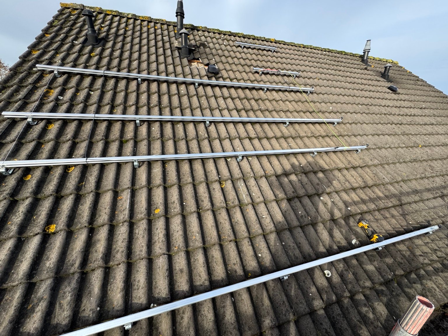 Installatie van zonnepanelen inclusief montage, bevestigingssystemen en een verzorgde afwerking op het dak.